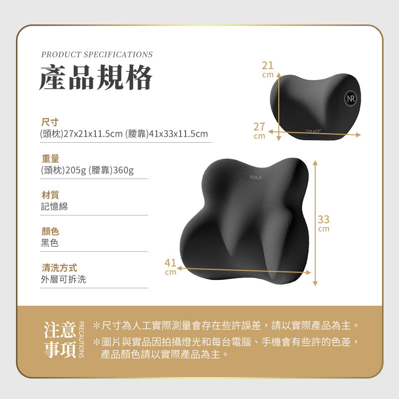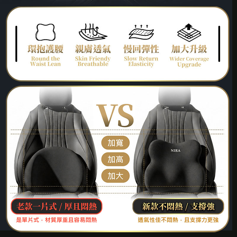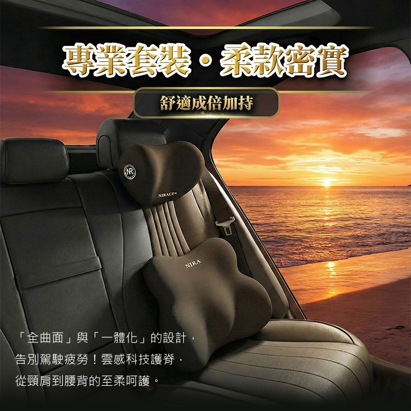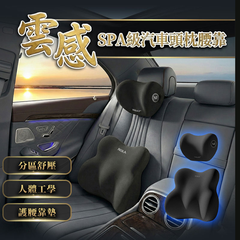 【NIRA】SPA級人體工學汽車腰靠頭枕CP89|記憶棉支撐、透氣不悶熱|長途開車護腰神器