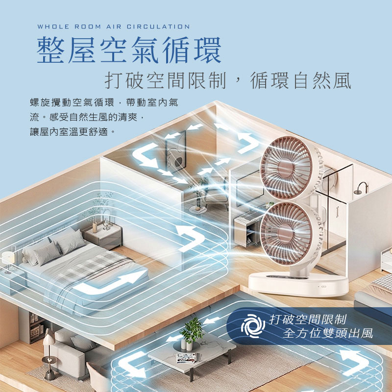 【UTA鴻嘉源】【日系S8雙頭扇】渦輪循環扇|1+1雙核大風量 270°靈活折疊 六檔風速 9H定時 靜音壁掛/桌面兩用 循環扇(Type-C供電 5V/2A)