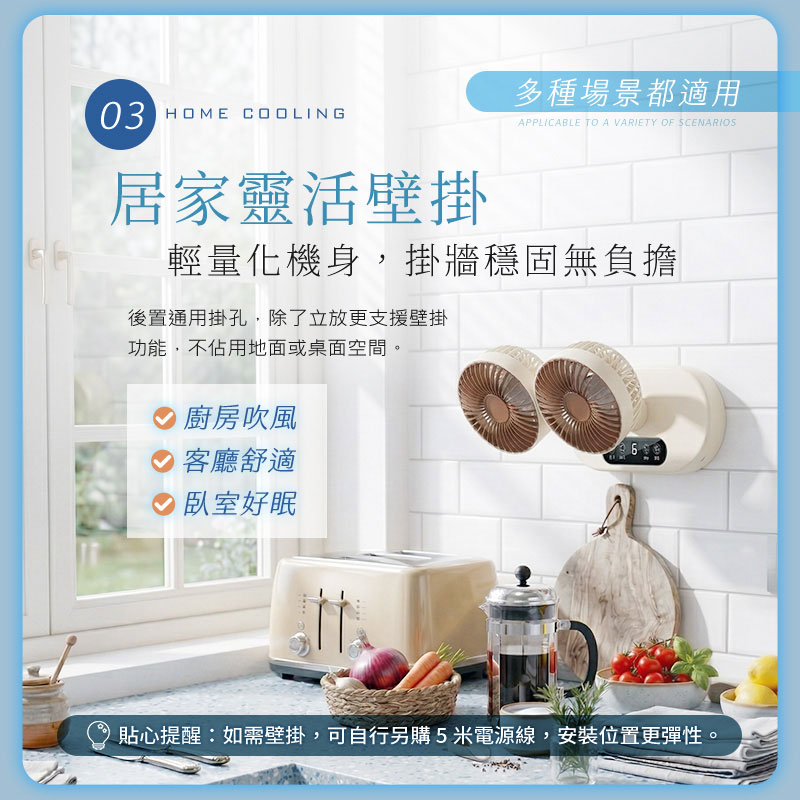 1. 1+1雙核核心風扇:獨家雙頭設計,支援「左單開、右單開、全開」三種模式,風力成倍輸出,一台抵兩台用