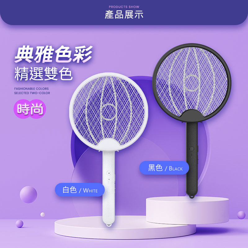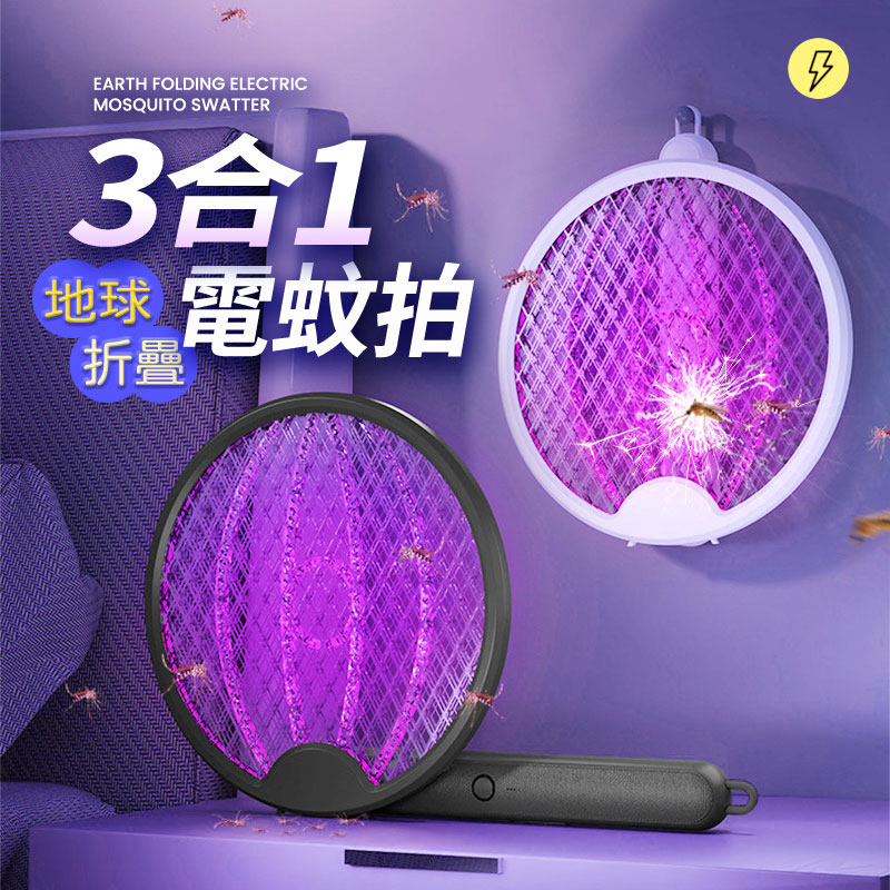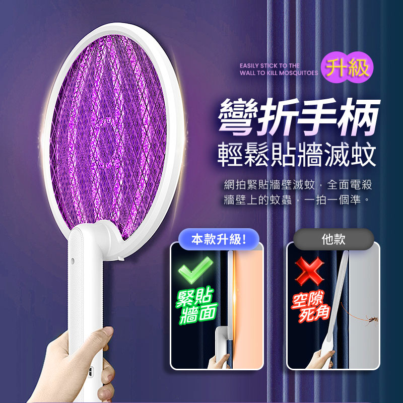 【UTA鴻嘉源】【180°旋轉變形】3合1折疊電蚊拍F2 捕蚊燈 壁掛/立放/手持 2800V強勁電壓 Type-C充電 皮革握把 安全雙開關 物理滅蚊