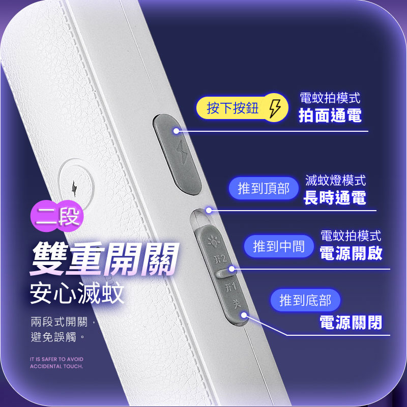 • ✨ 雙重安全防護: 必須同時開啟電源並按下擊殺鍵才通電,守護家人安全。